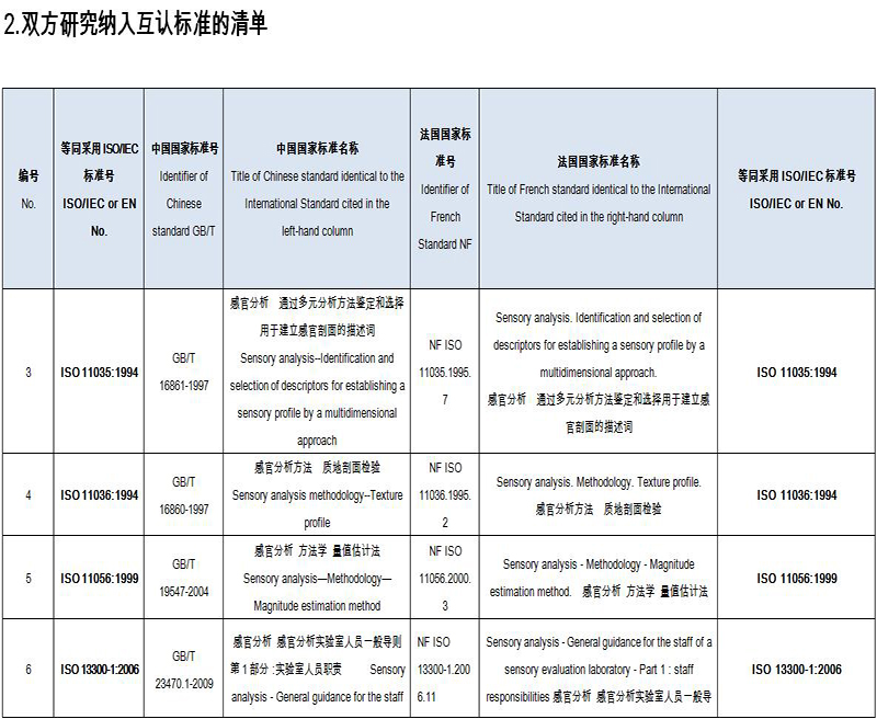 二、中国国家标准化管理委员会与法国国家标准化机构相互认可清单中所列的中国国家标准与相应的法国国家标准内容一致。