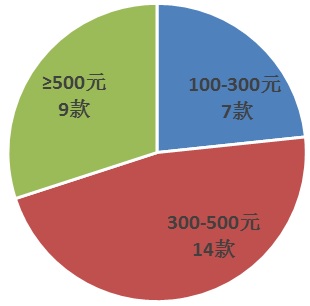 此次比较试验样品的价格从188元/辆到899元/辆不等,100~300元的有7款;300~500元的有14款;500元以上的有9款,涵盖高中低档。从本次比较试验的结果来看,并不是价格越高,样品质量表现就越好。