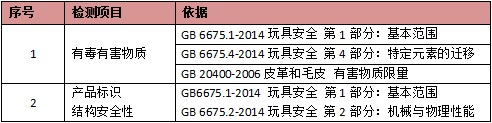 由于目前没有关于儿童平衡滑步车的国家标准及行业标准,因此,此次比较试验中我们借助了我们国家的儿童玩具标准GB6675-2014及皮革和毛皮有害物质限量标准GB20400-2006对儿童平衡滑步车的有毒有害物质、产品标识和结构安全性等测试。详细测试项目及标准见表1。