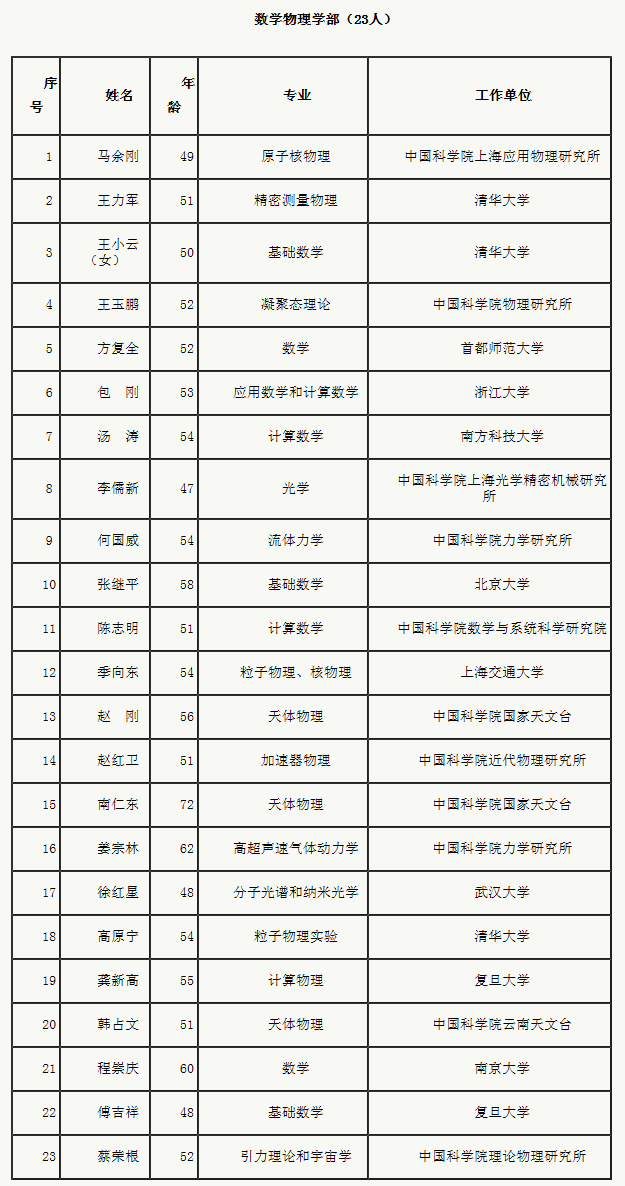 2017年中国科学院院士增选通信评审工作已经结束。根据《中国科学院院士章程》和《中国科学院院士增选工作实施细则》的规定,现将初步候选人名单予以公布。