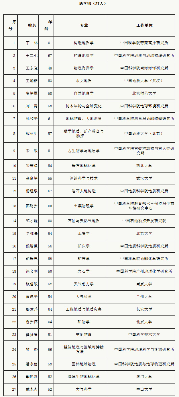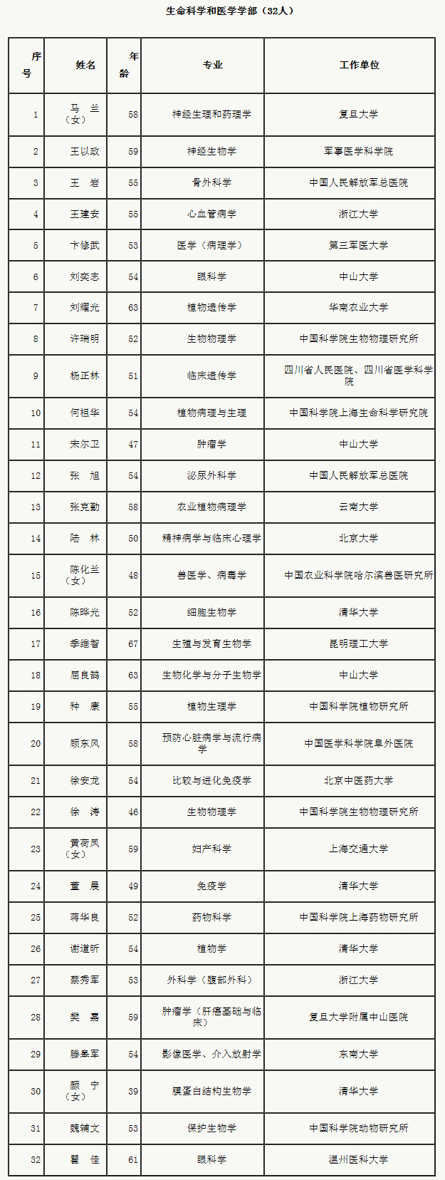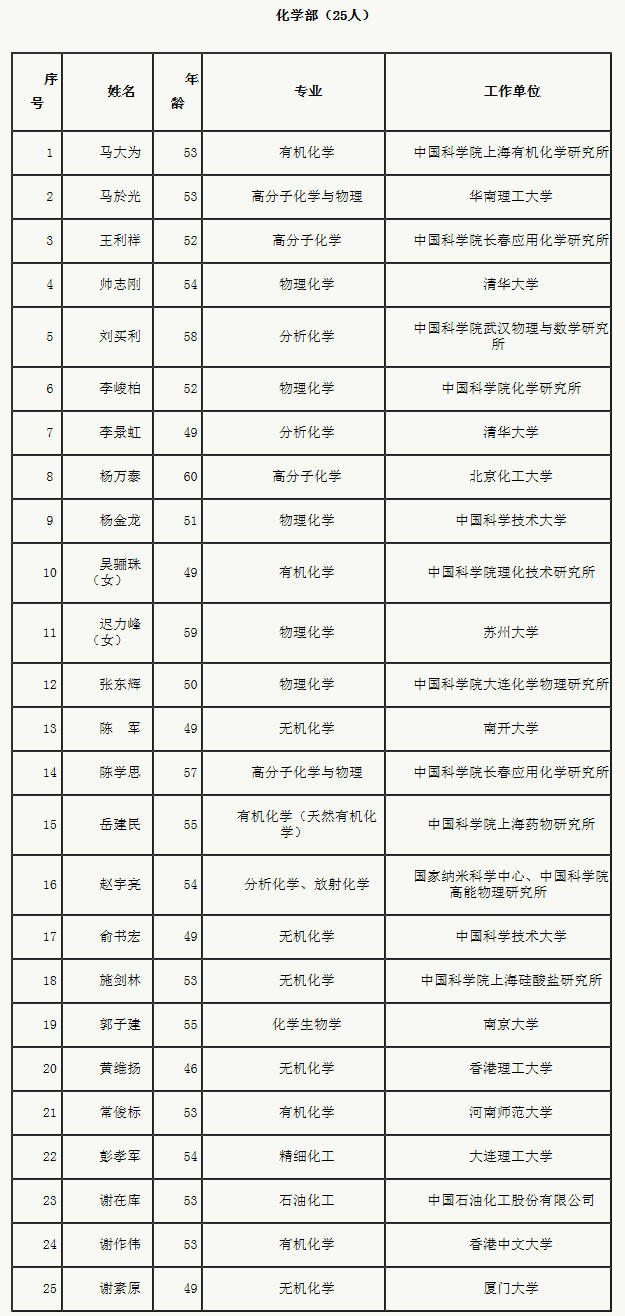 关于公布2017年中国科学院院士增选初步候选人名单的公告