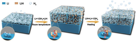 崔光磊介绍,首先,科研团队将在线差分电化学质谱系统进行巧妙地升级,实现在线滴定气体分析功能。而后,通过氘水(D2O)滴定金属锂负极(判据:2Li+2D2O→2LiOD+D2↑;LiH+D2O→LiOD+HD↑),在国际上首次发现失效粉化的金属锂负极中存在大量导电性差的氢化锂(LiH),且实用型锂金属电池的循环性能与锂金属负极中LiH的积累呈负相关性。更重要的是,揭示了LiH的生成和分解是由一个温度敏感的化学平衡(Li+1/2H2 LiH)决定的:室温条件下,界面副反应产生的H2与锂金属反应生成LiH;而通过加热,LiH会部分分解产生导电性优异且具有电化学活性的锂金属,从而恢复提升容量。该研究工作告诉我们,有效抑制H2的产生和LiH的积累对于锂金属负极的保护至关重要,这为实用型锂金属电池的发展提供了新的思路:(1)在正极侧,电解液氧化产物R-H+穿梭到负极还原是H2产生的主要原因,通过钝化正极和配制含氢少的电解液两种策略抑制R-H+的产生;(2)通过隔膜或聚合物电解质的功能化处理阻止R-H+穿梭到负极;(3)在金属锂负极构建储氢或吸附氢能力强的界面保护材料,实际上,目前报道的能有效保护金属锂负极的界面组分,如LiF, Li3N, BN, Li2O和纳米碳材料等,都是优异的储氢材料;(4)采用加热加压策略。崔光磊表示,该研究工作提示我们,应该在各类电池体系中,加强电极界面上金属氢化物的表征研究,而这将开创电池界面研究的新方向。