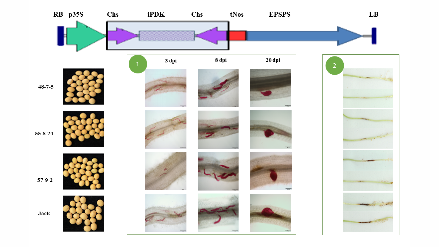 近日,中国农业科学院植物保护研究所作物线虫和细菌病害监测和防控创新团队应用寄主诱导基因沉默(HIGS)技术,研发出靶向大豆孢囊线虫几丁质合成酶基因(SCN-CHS)的转基因大豆遗传材料新种质,该种质材料为国际首例,对大豆孢囊线虫具有高度抗性,同时兼抗尖孢镰刀菌。相关研究成果在线发表在《植物生物技术杂志》(Plant Biotechnology Journal)上。