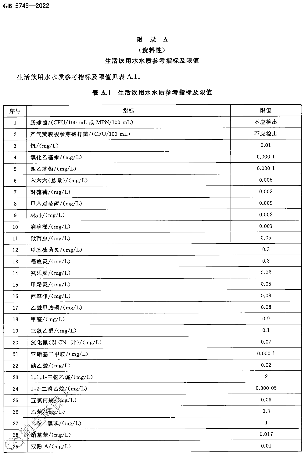 GB 5749-2022《生活饮用水卫生标准》于2022年3月15日经国家市场监督管理总局(国家标准化管理委员会)批准发布,代替GB 5749-2006《生活饮用水卫生标准》,自2023年4月1日起实施。