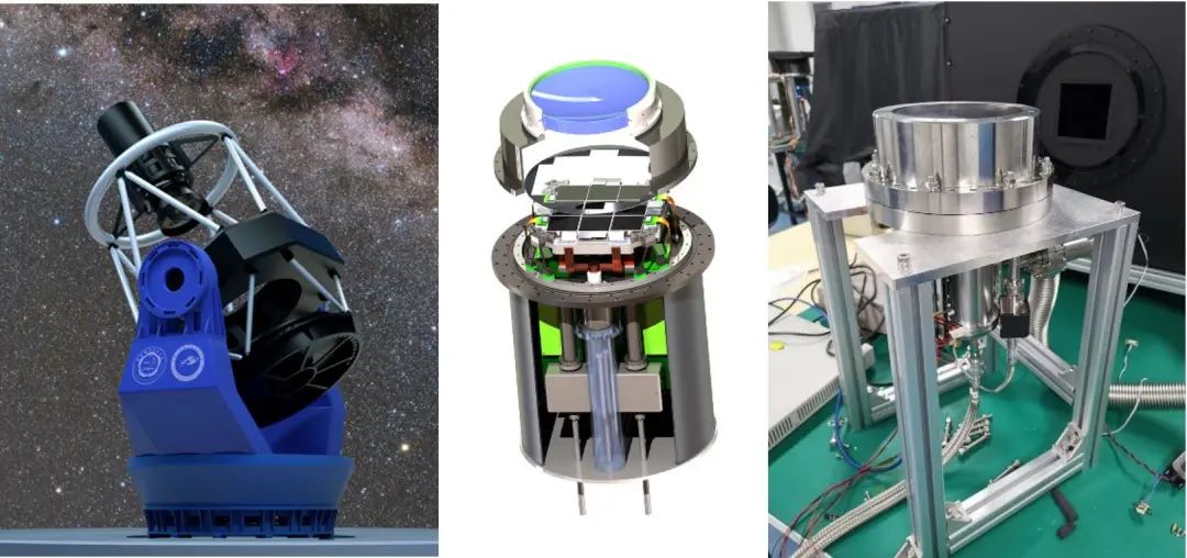 据悉,该望远镜主镜口径为2.5米,采用国际领先的主焦光学设计,提供大视场、高精度和宽波段巡天能力,性能先进。望远镜配备大面阵7.2亿像素拼接CCD探测器,具备强大的巡天能力,能够每3夜巡天整个北天球一遍。主焦相机是望远镜的关键部件之一,预算占整个望远镜的三分之一,是目前国内首个、国际领先的大视场主焦相机。由中国科学技术大学核探测与核电子学国家重点实验室王坚研究员带领的相机研制团队,对大靶面拼接主焦CCD相机的主要关键技术进行了攻关,完成科学成像CCD芯片的超低噪声读出,在500Kpix/s读出速率下读出噪声小于5个电子。科学成像CCD芯片采用单个芯片成像面积最大的CCD290-99,成像阵列达到9K x 9K,像素大小为10微米,成像面积达到92.2毫米 × 92.4毫米。