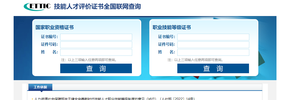 技能人才评价证书全国联网查询系统