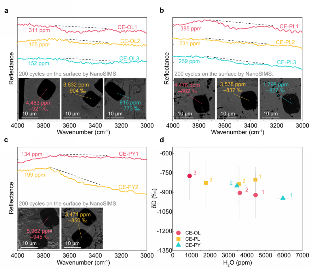 遥感探测发现月表普遍存在水(OH/H₂O),然而由于缺乏直接的样品分析证据,月表水的成因和分布一直存在争议。