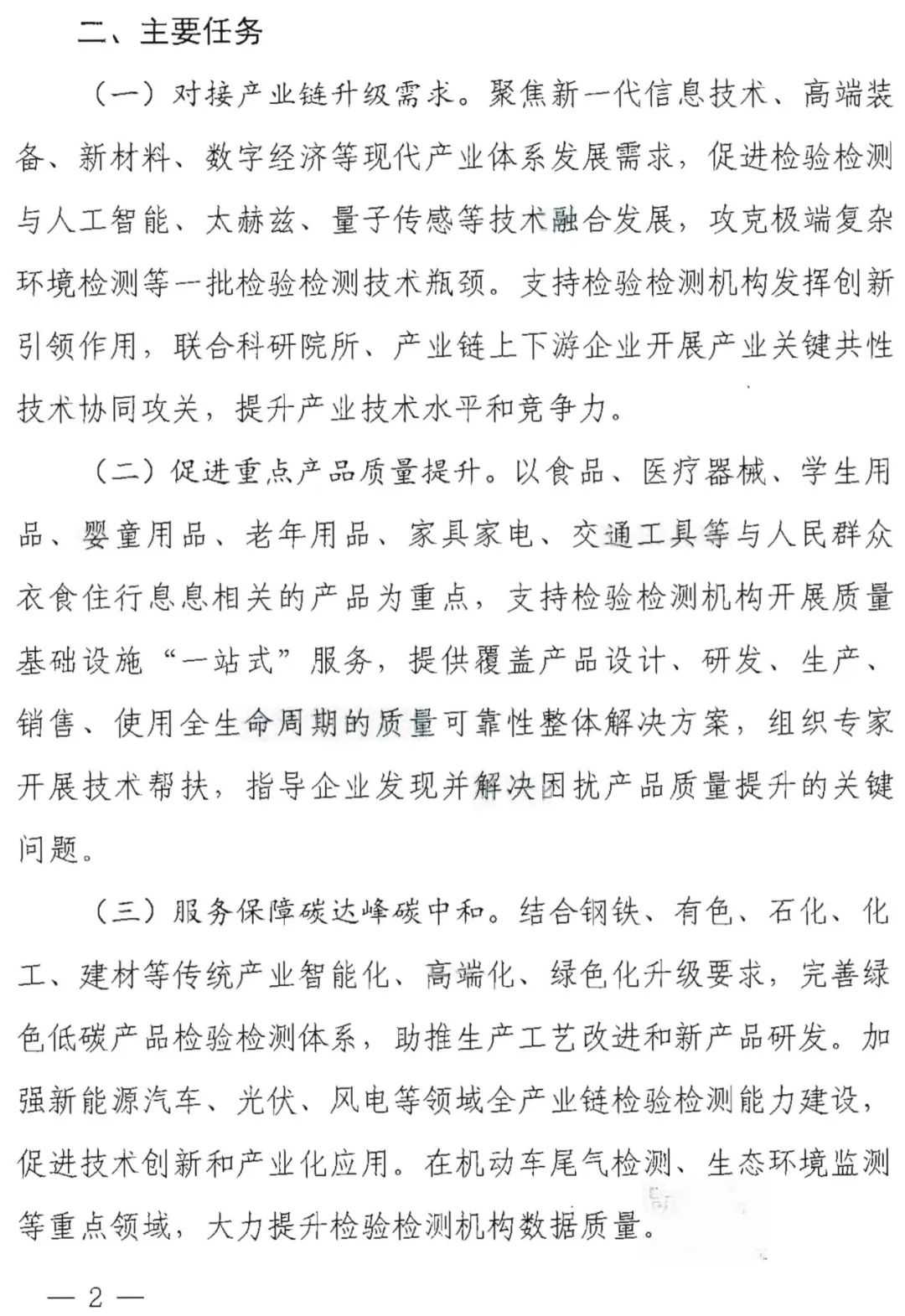 近日,认监委秘书处发布关于开展检验检测促进产业优化升级行动的通知。行动的主要任务包括:对接产业链升级需求,促进重点产品质量提升,服务保障碳达峰碳中和,优化检验检测技术服务。详情如下: