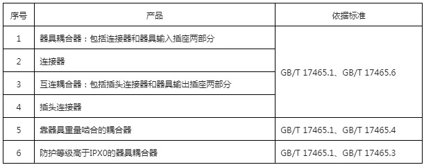 家用和类似用途器具耦合器强制性产品认证依据标准清单