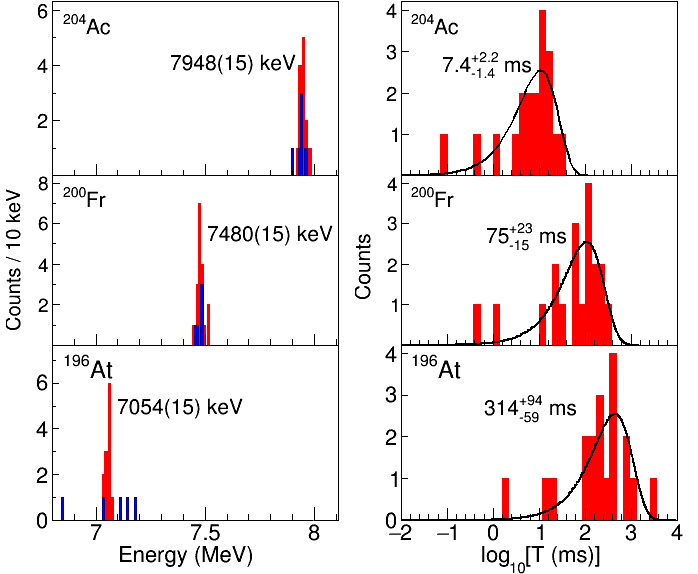 锕-204及其衰变后的子核、孙核发射α粒子的能量与时间分布。图/黄明辉