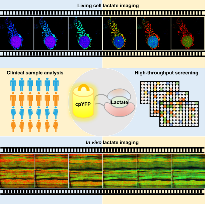 2022年10月28日,华东理工大学药学院、生物反应器工程国家重点实验室赵玉政教授、杨弋教授以及上海市第四人民医院王从容主任合作在Cell Metabolism发表题为 Ultrasensitive sensors reveal the spatiotemporal landscape of lactate metabolism in physiology and disease的技术长文,报道一种高性能的乳酸监测成像新技术,在乳酸空间分布、调控网络、药物筛选、临床诊断方面取得了重要突破。国家模式与特色实验细胞资源库为该项研究的开展提供了人胚肾细胞HEK293T、人非小细胞肺癌细胞NCI-H1299等。我库长期为赵玉政研究员团队提供免疫相关实验细胞,支撑其开展细胞代谢调控机制及细胞代谢监测成像新技术的研究。