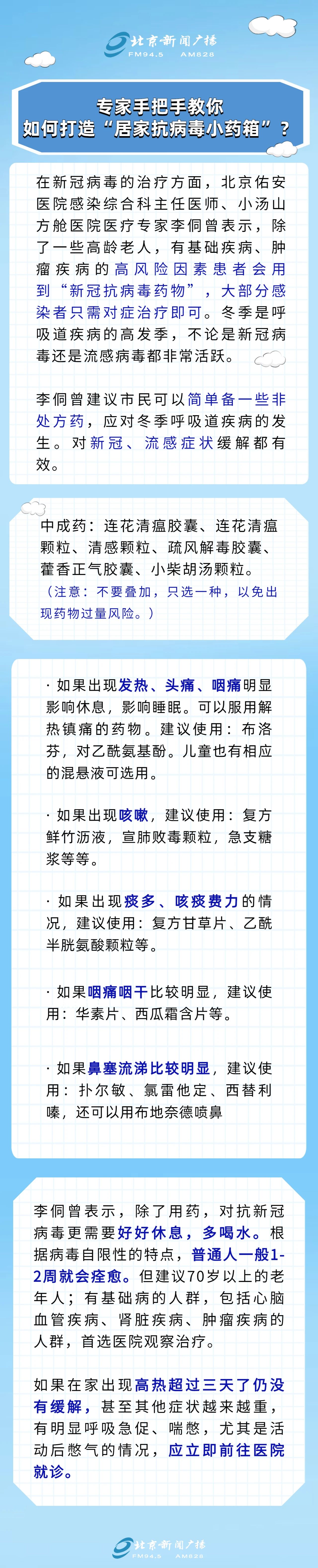 感染新冠病毒后,一般会相继出现哪些症状?到底应该如何科学用药?为应对可能发生的包括奥密克戎BF.7毒株感染在内的呼吸道传染病,大家是否需要提前准备 “居家抗病毒小药箱”?“小药箱”里应该备好哪些药物?