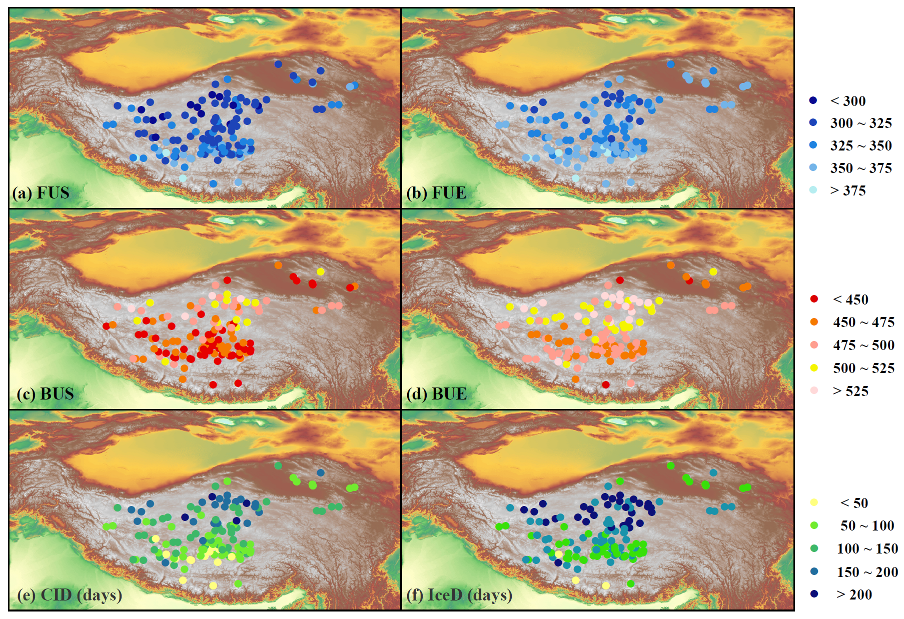 青藏高原湖冰物候指标空间分布。图片由空天院提供