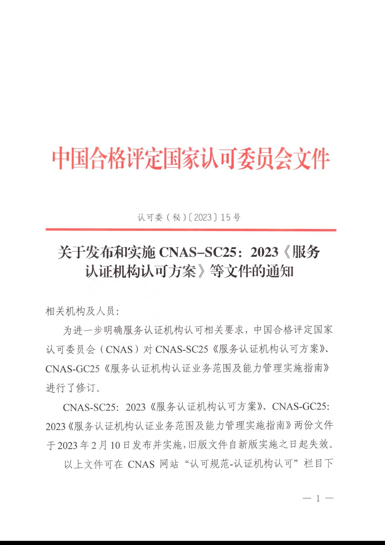 附件1:CNAS-SC25:2023《服务认证机构认可方案》